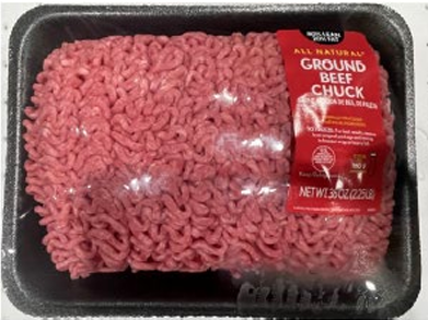 - 2.25-lbs. plastic-wrapped trays containing “80% LEAN 20% FAT ALL NATURAL GROUND BEEF CHUCK” with lot code 118 and establishment number “EST. 86P” printed on the back of the label.