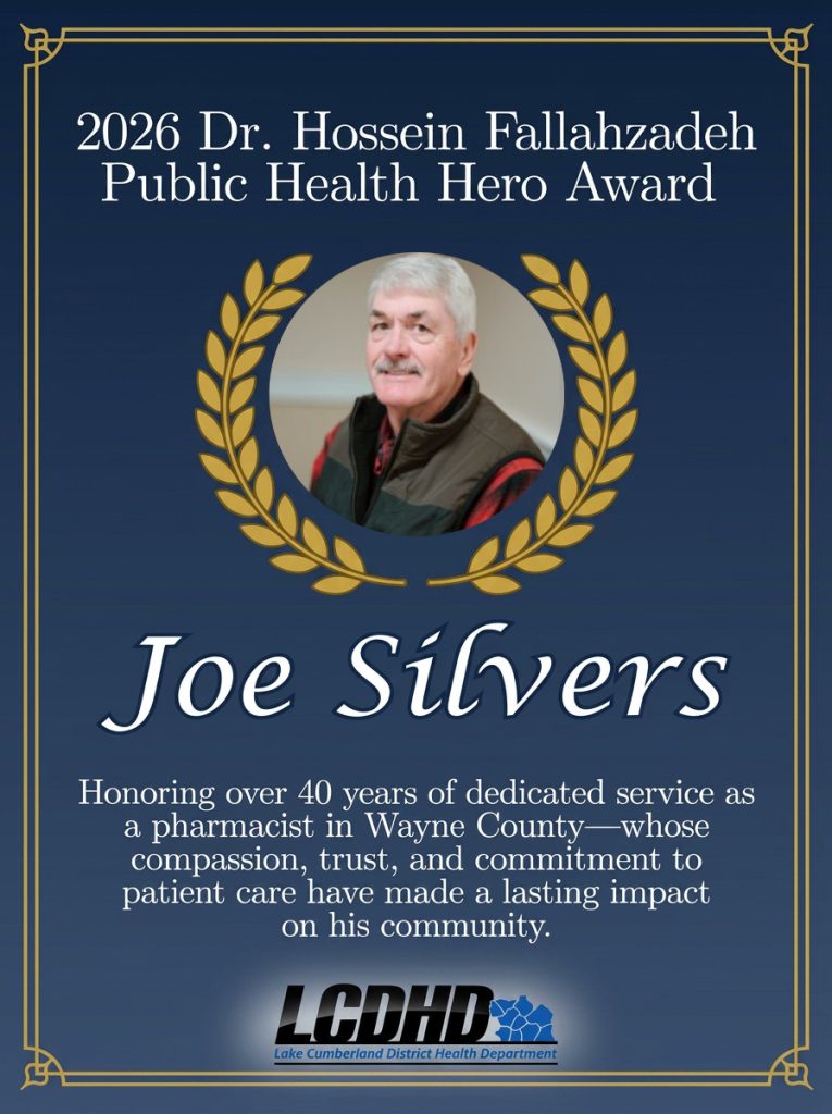 The Lake Cumberland District Health Department is proud to announce that Joe Silvers, RPh, has been named the recipient of the 2026 Dr. Hossein Fallahzadeh Public Health Hero Award. The Dr. Hossein Fallahzadeh Public Health Hero Award is given annually to an individual who has made remarkable contributions to improving public health in the Lake […]