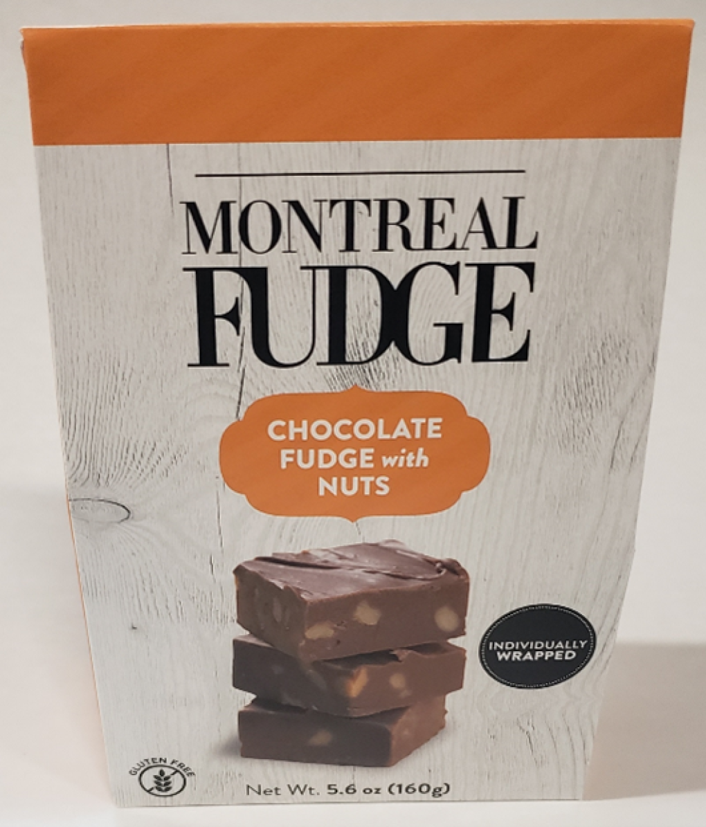The product is packaged in a MONTREAL FUDGE gable box, Chocolate Fudge with nuts 5.6 Oz marked with the lot 0241500805 with expiration date of 2025/MR/01, lot 0241690105 with expiration date of 2025/MR/17, and lot 0241690205 with expiration date of 2025/MR/17, on the back of the box. No other products are impacted by this recall.