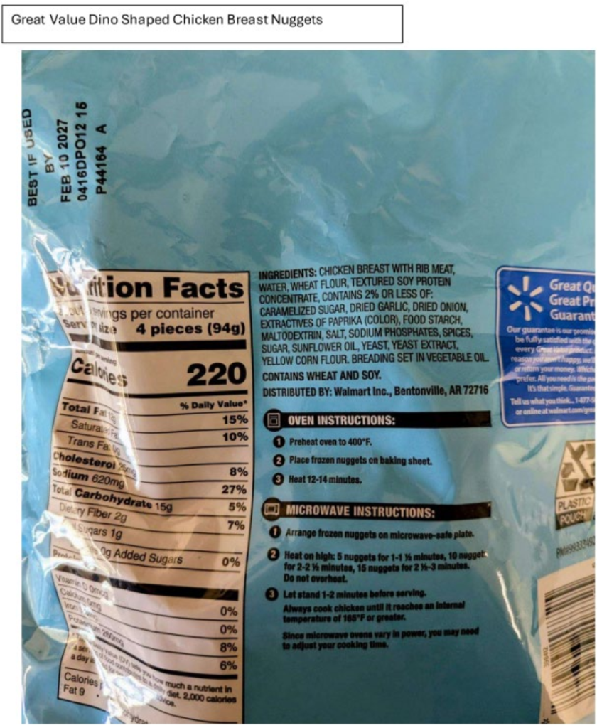 FSIS is issuing this public health alert because the products may no longer be available for purchase, but could still be in consumers’ freezers. These items were shipped to Walmart locations nationwide. There have been no confirmed reports of adverse reactions due to consumption of these products.