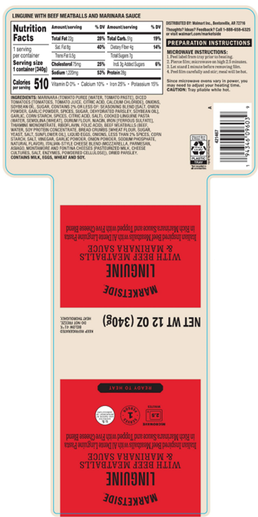 - Sold at Walmart: 12-oz. clear plastic tray packages labeled “MARKETSIDE LINGUINE WITH BEEF MEATBALLS & MARINARA SAUCE” with “best if used by” dates SEP 22, 2025; SEP 24, 2025; SEP 25, 2025; SEP 29, 2025; SEP 30, 2025; and OCT 01, 2025. The product bears establishment number “EST. 50784” or “EST. 47718” inside the USDA mark of inspection. [view labels]