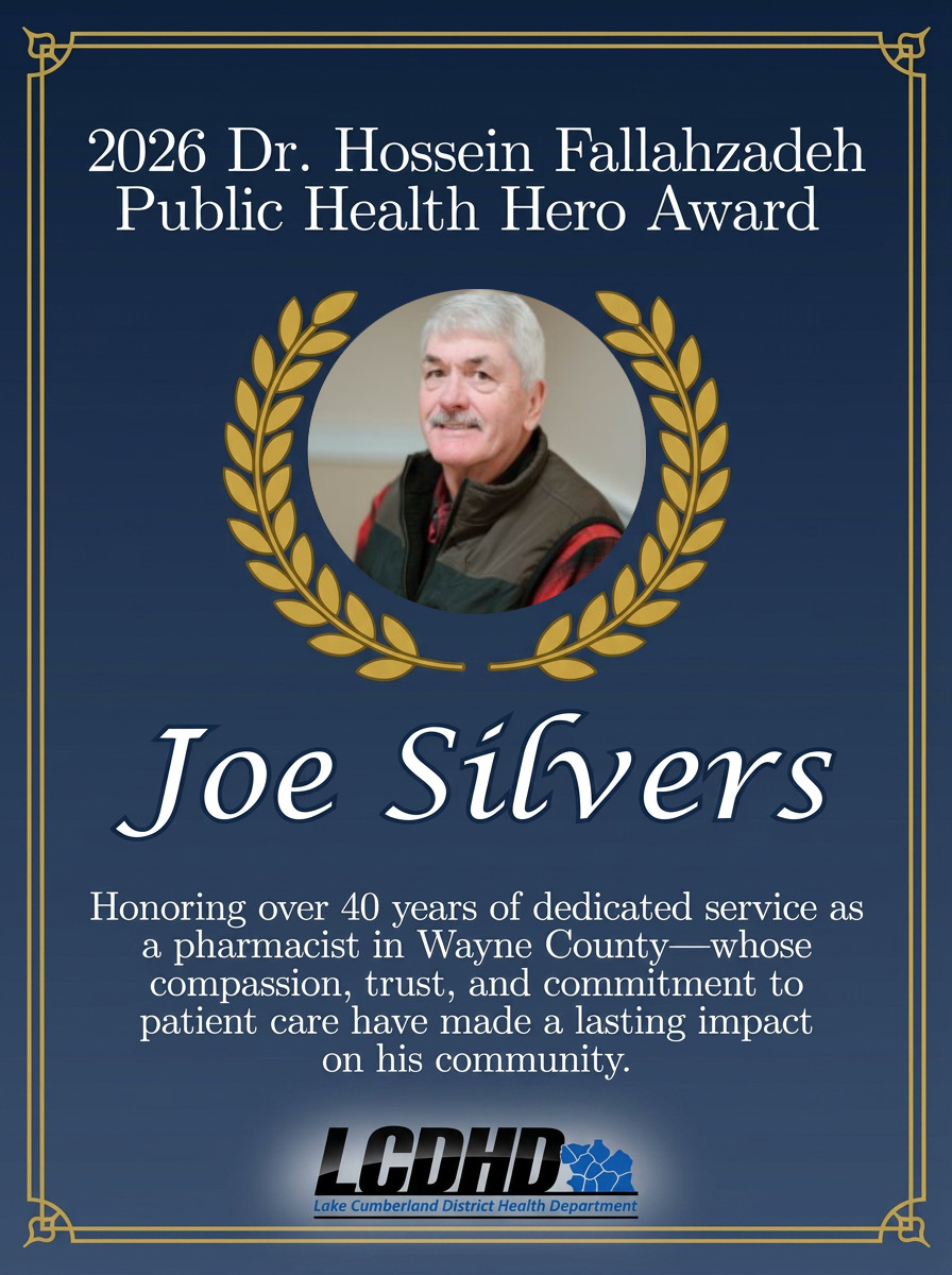 The Lake Cumberland District Health Department is proud to announce that Joe Silvers, RPh, has been named the recipient of the 2026 Dr. Hossein Fallahzadeh Public Health Hero Award.