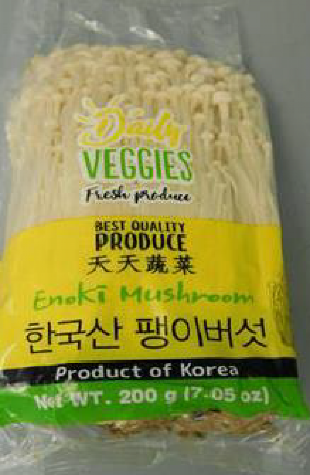Consumers who have purchased 200g packages of Daily Veggies Enoki Mushroom should not consume the products and are urged to destroy the products immediately or return them to the place of purchase for a full refund. Consumers with questions may contact the company at 718-808-1018 between 9am to 2pm Eastern Time, Monday through Friday.