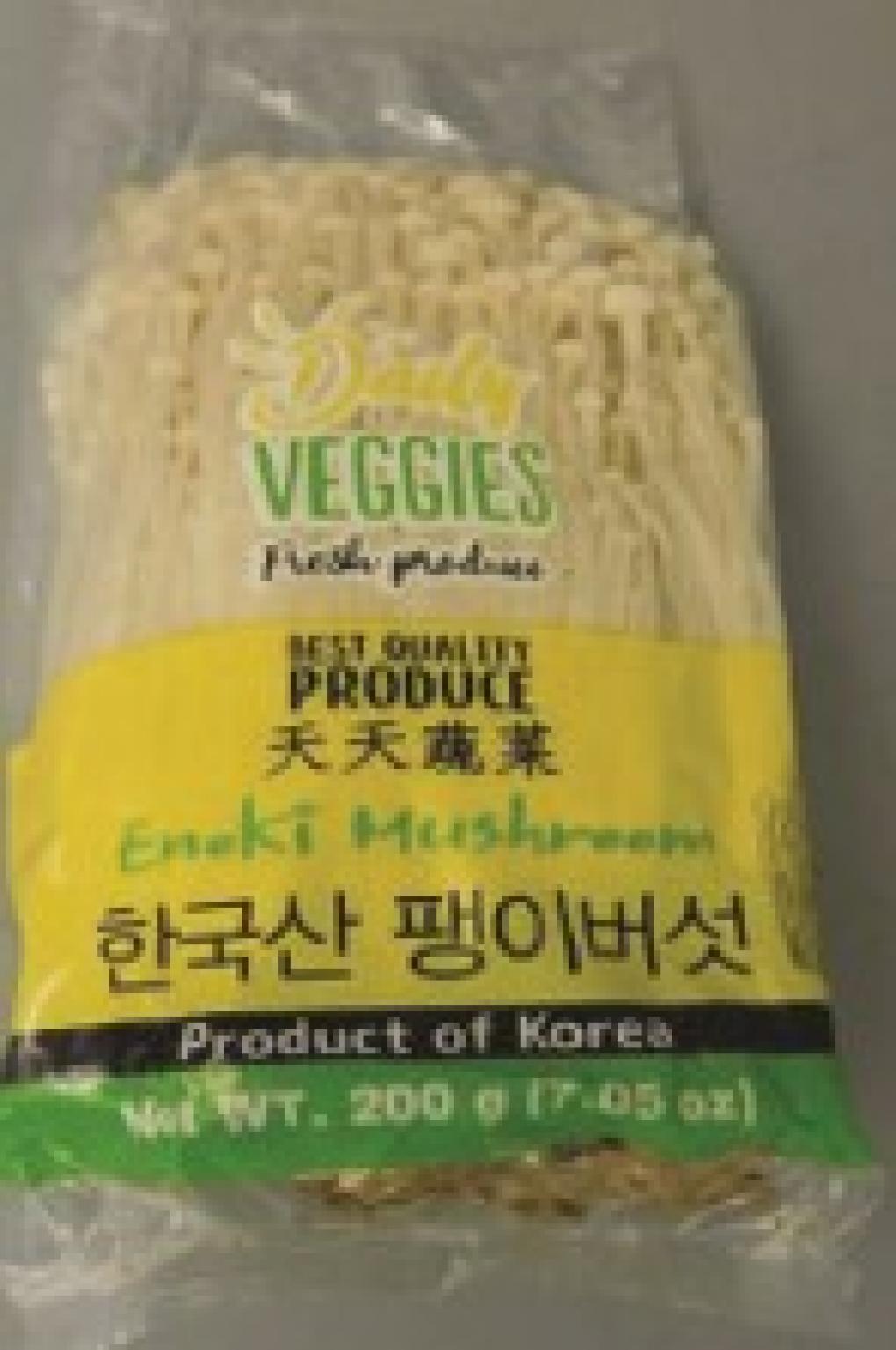 Consumers who have purchased 200g packages of Daily Veggies Enoki Mushroom from October to November of 2024 are urged to destroy the products immediately or return them to the place of purchase for a full refund. Consumers with questions may contact the company at 718-808-1018.